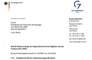 Die Bundesregierung hat nach eigenen Worten „präzedenzlose Sanktionen“ verhängt mit dem Ziel, „Russland zur Beendigung seines Angriffskrieges zu bewegen“. Soweit der öffentliche Diskurs. Doch aus den Antworten auf eine Kleine Anfrage der Linken-Abgeordneten Sevim Dagdelen unter dem Titel „Erfolgskontrolle der Sanktionen gegen Russland“, die den NachDenkSeiten vorliegt, geht hervor, dass die Bundesregierung bis heute nicht