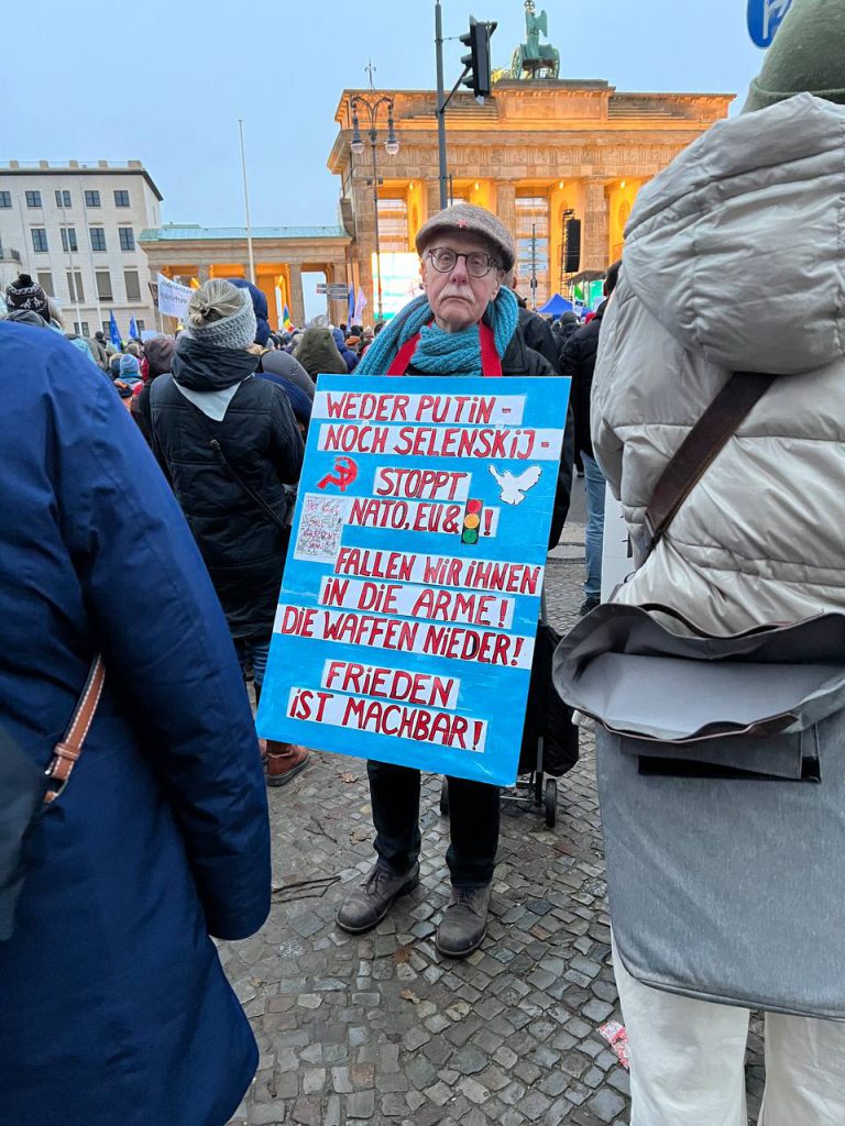 Am 25.11.2023 fand in Berlin eine Friedensdemonstration vor dem Brandenburger Tor statt, zu der ein breites Bündnis aufgerufen hatte. Die diffamierende, mediale „Berichterstattung“, von der die NachDenkSeiten bereits berichtet haben, veranlasst Ala Goldbrunner, ihre persönlichen Eindrücke vor Ort ohne Anspruch auf Vollständigkeit wiederzugeben.