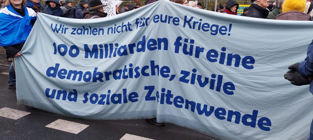 Ein Freund berichtete mir, die Gegendemos seien überraschend gering besucht gewesen. ‚Nein zu Kriegen‘ war eine große und unerlässlich wichtige Veranstaltung. Aber es müssten viel, viel mehr werden, um etwas bewegen zu können. Es sei in diesem Zusammenhang nochmals aus der Rede von Gabriele Krone-Schmalz zitiert: