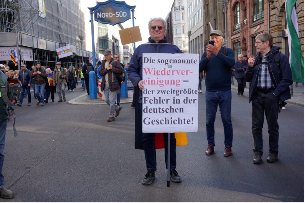 Auf der Berliner Friedensdemonstration sorgte Ortnit Wetterau aus Halle (Saale) für Aufsehen, indem er neben seiner Friedensbotschaft offen eine DDR-Fahne trug. Der Physiker, der sein Studium 1985 in dem Land begann, das vor 35 Jahren verschwand, sieht dieses Symbol nicht als Nostalgie, sondern als scharfe Kritik an der heutigen Politik, die er als „gefährlichen Wahnsinn“ brandmarkt. Für ihn sind Marktwirtschaft und Kapitalismus „sowas von durchgefallen“.