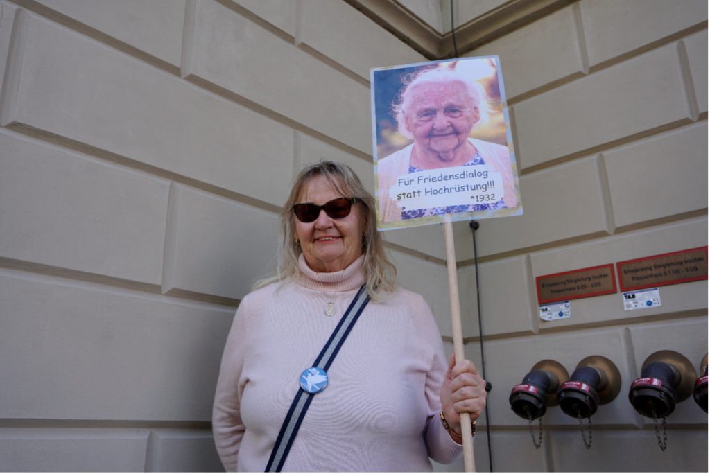 Das wohl bewegendste Element ihres persönlichen Protestes war ein Foto, das sie als Plakat mit sich trug. Es zeigte ihre 93-jährige Mutter Gerda, die selbst nicht an der Demonstration teilnehmen konnte, aber gern dabeigewesen wäre. Das Bild stand stellvertretend für eine ganze Generation von Kriegszeitzeugen. Ihre Mutter habe als Kind den vollen Schrecken des Krieges miterlebt und auch knapp überlebt: „Das darf nie wieder passieren.“