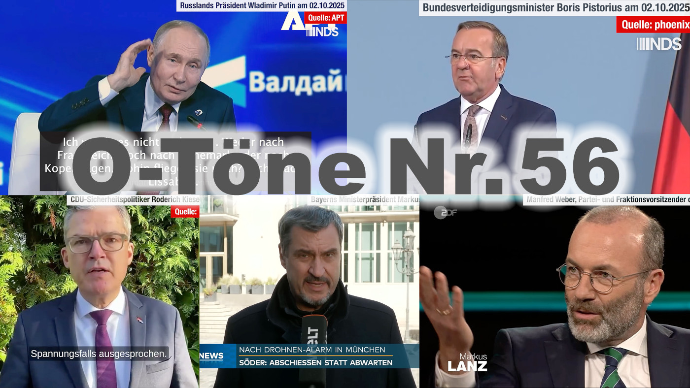 Nach Polen, Dänemark und Norwegen hat es nun auch München erwischt: Zwei Nächte hintereinander mussten Tausende Passagiere wegen gestrichener Flüge am Münchner Flughafen verbringen. Schuld waren mysteriöse Drohnen, die angeblich im Raum des Flughafens gesichtet wurden. Wie viele und welcher Art – das konnte niemand sagen. Für Top-Politiker waren die „Sichtungen“ jedoch Grund genug, radikale Maßnahmen zu initiieren, bis hin zur „Ausrufung eines Spannungsfalls“. Aber schon vor dem Vorfall in München ließ man sich originelle „Gegenmaßnahmen“ einfallen – etwa „die Moskauer U-Bahn für einen Tag stillzustellen“. Eine neue Ausgabe der O-Töne.