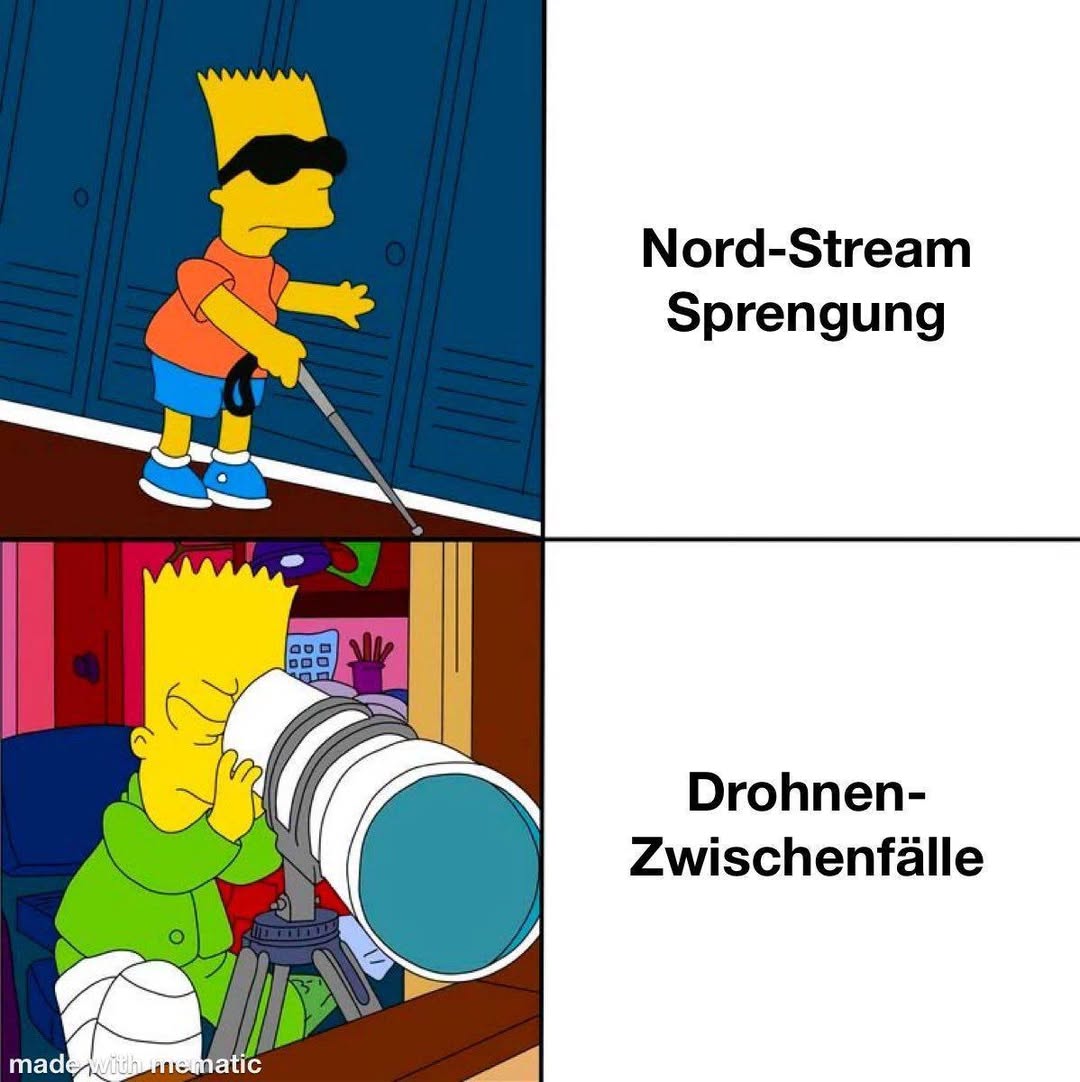 Angesichts der Wucht und der mangelnden Seriosität der Drohnen-Kampagne machen sich manche Bürger nun Luft durch Satire. Einige vergleichen dabei die demonstrative „Wachsamkeit“ gegenüber unbelegten Drohnenvorfälllen mit der selbst auferlegten „Blindheit“ bezüglich des Nord-Stream-Anschlags. Viele sehen auch eine Kontinuität zur Corona-Propaganda oder auch einfach eine weitere Steigerung der antirussischen Meinungsmache. Die Bilder wurden von der Redaktion zusammengetragen, hier folgt eine kleine Auswahl aus diesen satirischen Netzfunden.