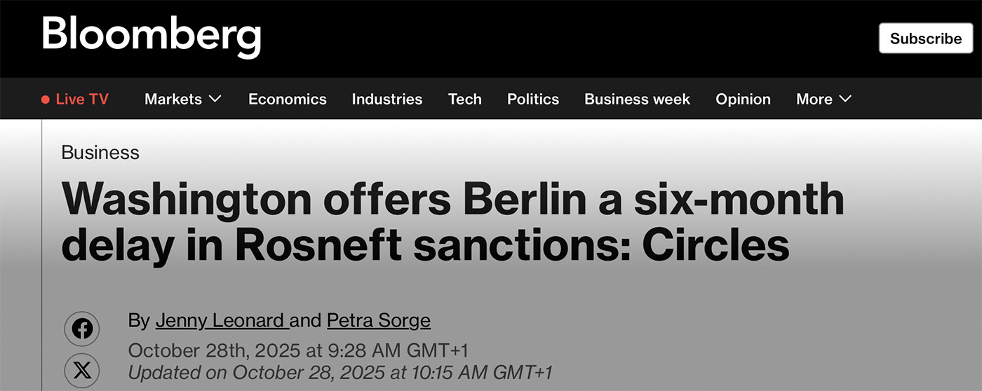 Die USA haben in der vergangenen Woche umfassende neue Sanktionen gegen die russischen Ölkonzerne Rosneft und Lukoil verhängt. Davon betroffen war auch Rosneft Deutschland, welches seit September 2022 unter der Treuhandschaft des Bundeswirtschaftsministeriums steht.
