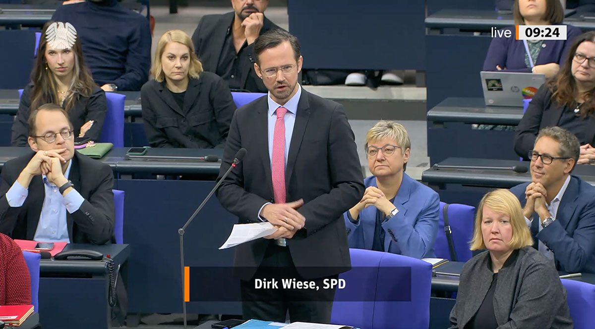 Stichwort Haushalt. Mitten im Plenum stand da ja ein richtig großer, dicker Elefant im Raum. Mehr als 108 Milliarden Euro sollen im kommenden Jahr für Rüstung und Militär ausgegeben werden. Ein historischer Rekord. An allen anderen Ecken muss nun gekürzt werden. Finanziert wird die Hochrüstung zu großem Teil auf Pump. Inklusive der Schattenhaushalte und Sondertöpfe beträgt die Nettoneuverschuldung 180 Milliarden Euro. Bei einem Haushaltsvolumen von 525 Milliarden Euro ist das rund ein Drittel, auch das ist ein historischer Höchstwert.