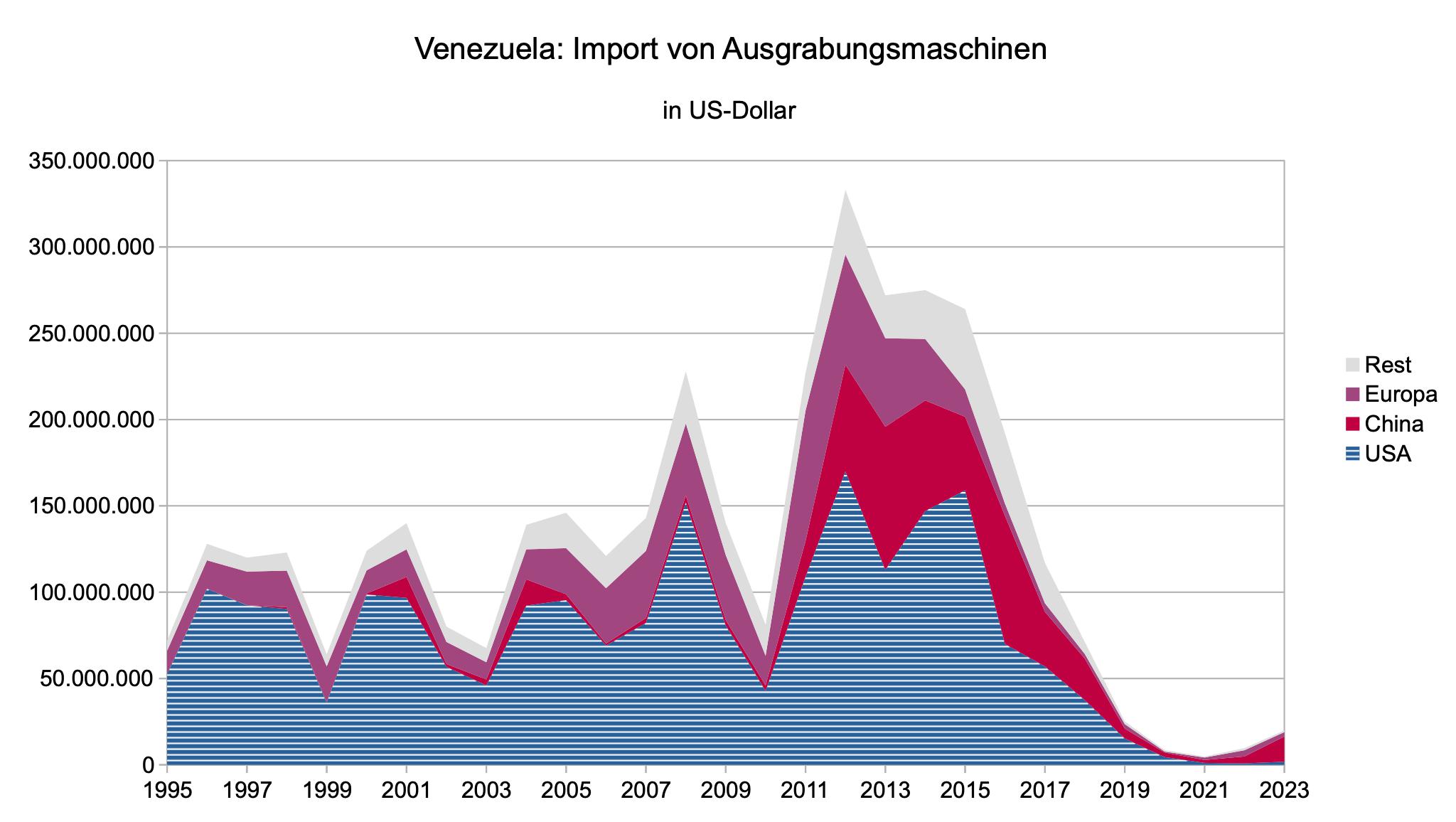 Sollten letztendlich marode Ölförderanlagen und fehlende entsprechende Investitionen der Hauptgrund für die einbrechenden Ölfördermengen Venezuelas nach 2017 gewesen sein, zeigt eine Analyse des Imports von Ausgrabungsmaschinen, dass auch hierfür vornehmlich die US-Sanktionen verantwortlich sind.