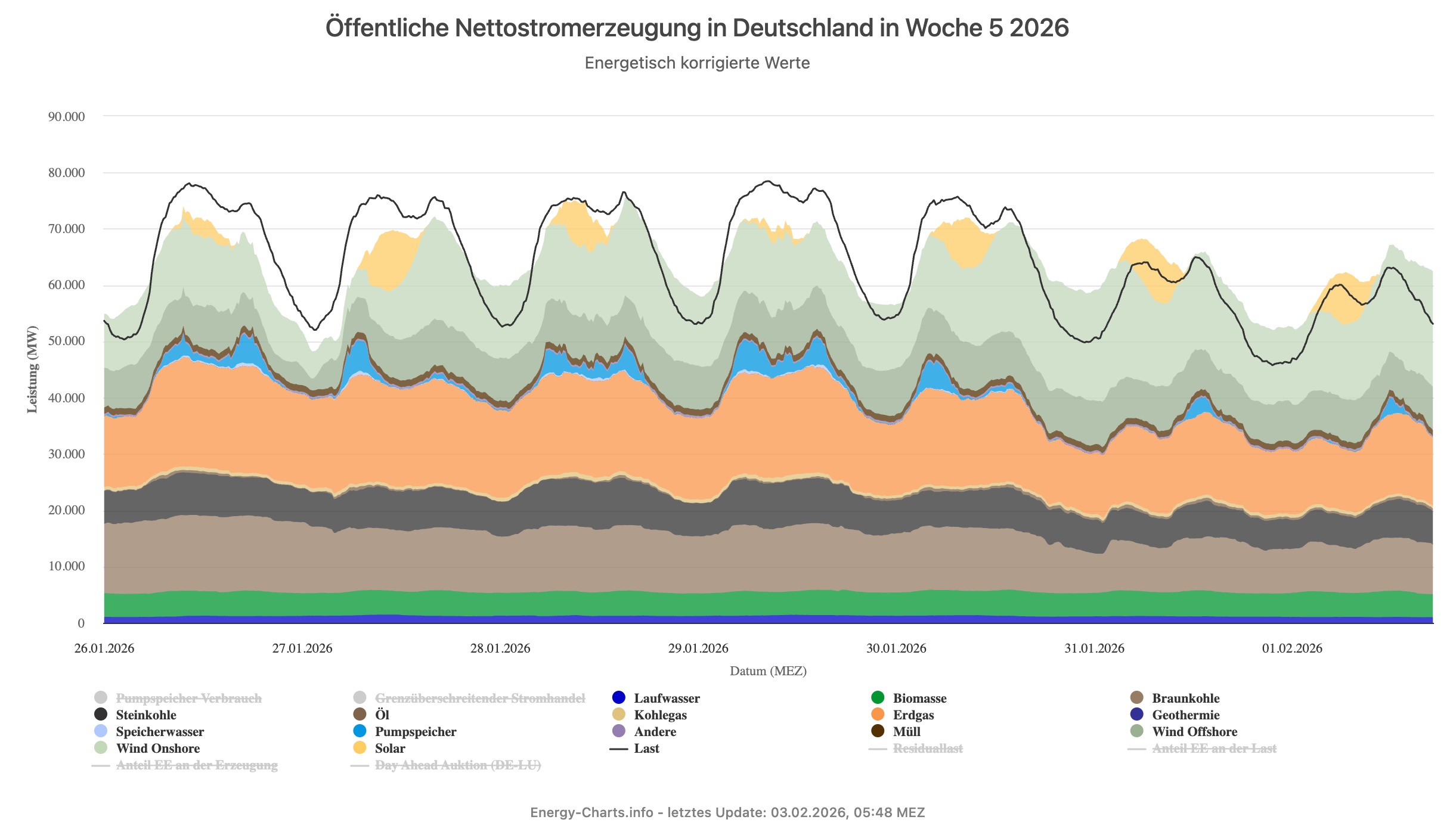 Offen ist jedoch ein weiterer Punkt. Der Januar 2026 zeichnete sich auch dadurch aus, dass noch nie so viel Gas zur Stromproduktion eingesetzt wurde. Das ist sogar verständlich, scheint im Januar doch wenig Sonne. Das wird in der gesamten Debatte erstaunlicherweise kaum bedacht. Was passiert also, wenn es in den nächsten Wochen nicht nur kalt wird, sondern auch dunkel bleibt und der Wind nur schwach weht? Das wäre dann wohl die „perfekte Kombination“ für eine Versorgungskrise, bei der nicht nur die Gasheizung, sondern auch flächendeckend die Stromversorgung Probleme bekommen könnte.