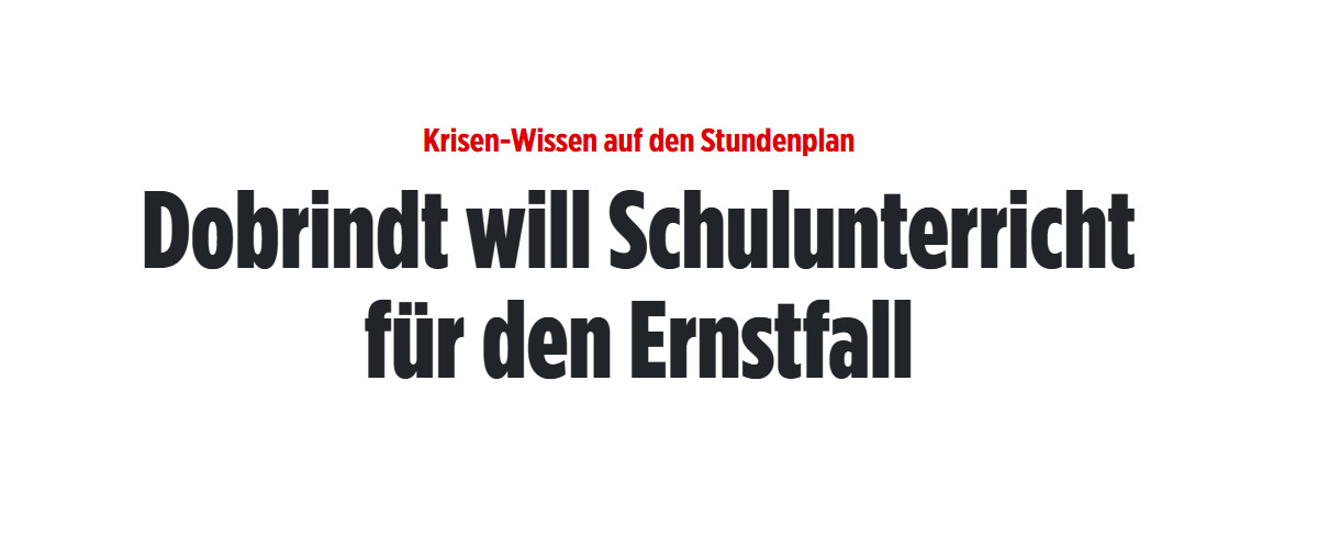 „Innenminister Dobrindt fordert Krisenunterricht an Schulen“, „Dobrindt will Pflichtunterricht für Zivilschutz an Schulen bundesweit einführen“, „Krisen-Wissen auf den Stundenplan: Dobrindt will Schulunterricht für den Ernstfall“ – das sind nur drei Schlagzeilen, die erahnen lassen, wie die Berichterstattung zu dem Vorhaben des Innenministers aussieht. Nachrichtlich – von einem kritischem Einschlag keine Spur. Und da wird auch schon das Problem sichtbar: Es ist das eine, vom Grundsatz her über Zivilschutz an Schulen zu sprechen. Es ist aber etwas anderes, wenn der Innenminister Schüler auf einen „Ernstfall“ vorbereiten will, während die Politik die Losung ausgibt: Wir müssen kriegstüchtig werden.