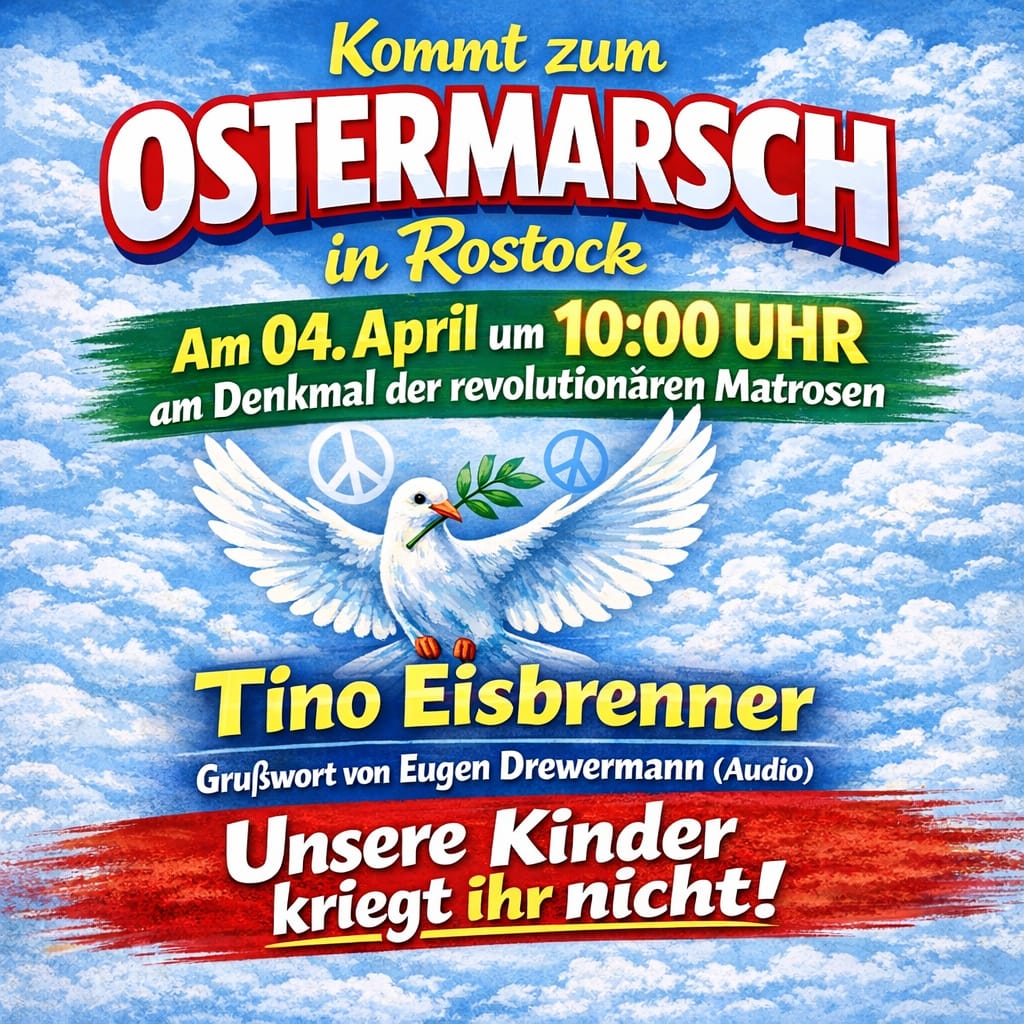 Ostermarsch in Rostock mit Tino Eisbrenner und einem Grußwort von Eugen Drewermann (Audio).