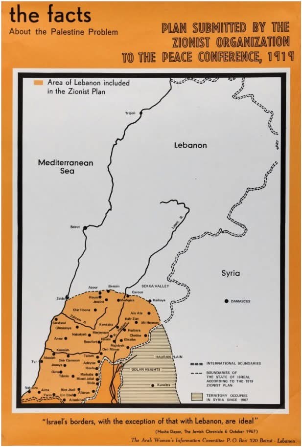 Schon 1919 legte die Zionistische Nationalbewegung auf der Pariser Friedenskonferenz Karten vor, auf denen ihr Staat, den sie in Palästina gründen wollten, skizziert war. Vom Libanon wollten sie schon damals den gesamten Süden zwischen der Hafenstadt Sidon und dem Berg Hermon, arabisch „Jbeil Sheikh“, ihr „Eigen“ nennen.