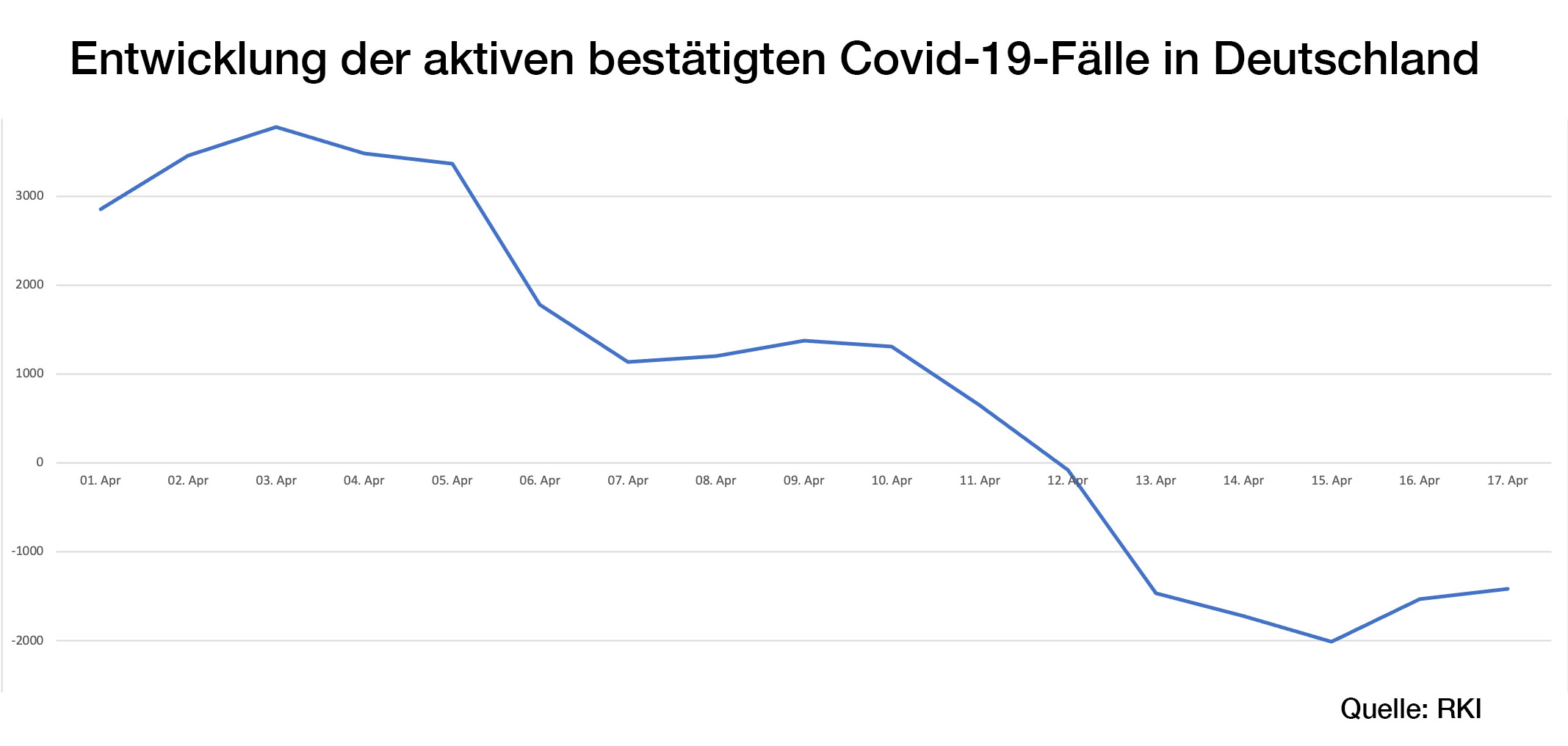 Wenn man sich die Daten des Robert Koch-Instituts zur jüngeren Ausbreitung des neuen Coronavirus anschaut, könnte man eigentlich entspannt in die Zukunft schauen und sich endlich ernsthaft mit einer gestaffelten Exit-Strategie auseinandersetzen, die ein wenig ambitionierter ist als die in dieser Woche von Bund und Ländern umrissenen Lockerungen. Denn die Daten zeigen vor allem eins: Die Zahl der aktiv Erkrankten geht mittlerweile zurück. Seit Ostersonntag ist die Zahl der „Neu-Genesenen“ Tag für Tag höher als die offiziell vermeldete Zahl der „Neu-Infizierten“. Doch diese Zahlen sind in der Rohform leider aus mehreren Gründen nicht sonderlich belastbar.