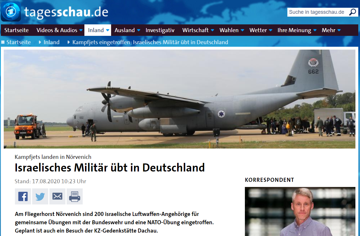 Die etablierten deutschen Medien verlieren darüber kein einziges Wort. Schauen Sie sich mal an, was dort so alles zu lesen, zu hören und zu sehen ist. Das zu lesen lohnt sich! Eine Auswahl von Berichten über die Präsenz israelischer Flugzeuge in Deutschland, in Dachau und in Fürstenfeldbruck finden Sie im folgenden Teil A. Dann wie angekündigt einige Leserbriefe in Teil B.