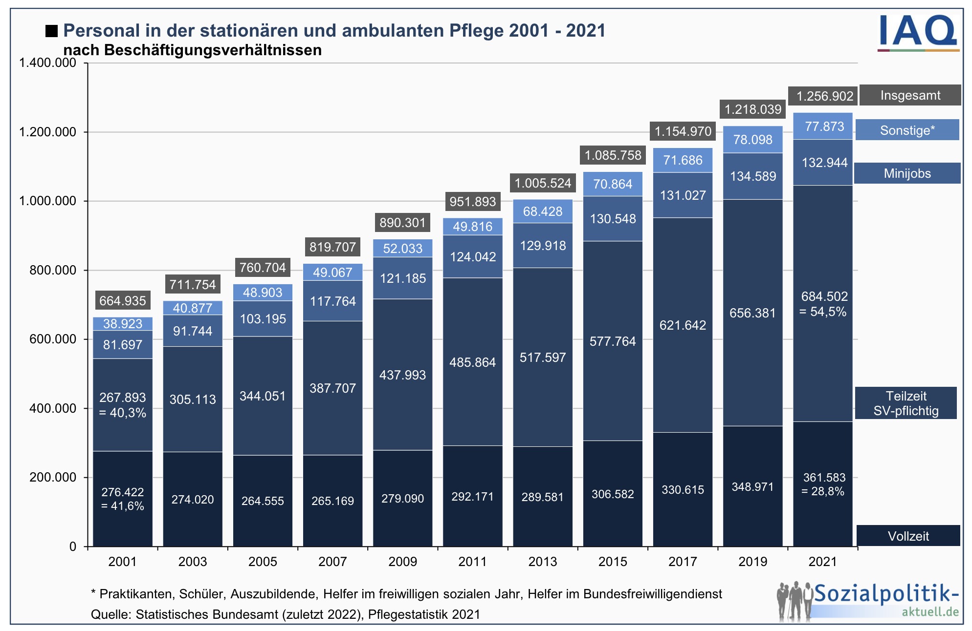Was könnte die Politik denn sonst tun? Die Antwort auf diese Frage ist gar nicht mal so schwer. In den letzten zwanzig Jahren hat sich Zahl des Personals in der stationären und ambulanten Pflege nach Angaben des Statistischen Bundesamtes nahezu verdoppelt. Dabei ist die Zahl der in Vollzeit tätigen Mitarbeiter jedoch lediglich um 30 Prozent gestiegen, während sich die Zahl der in Teilzeit tätigen Mitarbeiter fast verdreifacht hat. Stand 2021 arbeiteten 684.502 Pflegefachkräfte in Teilzeit – fast doppelt so viel wie die 361.531 Pflegefachkräfte, die in Vollzeit arbeiten. Die 115.000 fehlenden Vollzeitkräfte wären also rein rechnerisch sehr leicht aus dem jetzigen Pool der Fachkräfte zu rekrutieren. Man müsste „nur“ die Teilzeitkräfte dazu animieren, länger oder sogar in Vollzeit zu arbeiten.