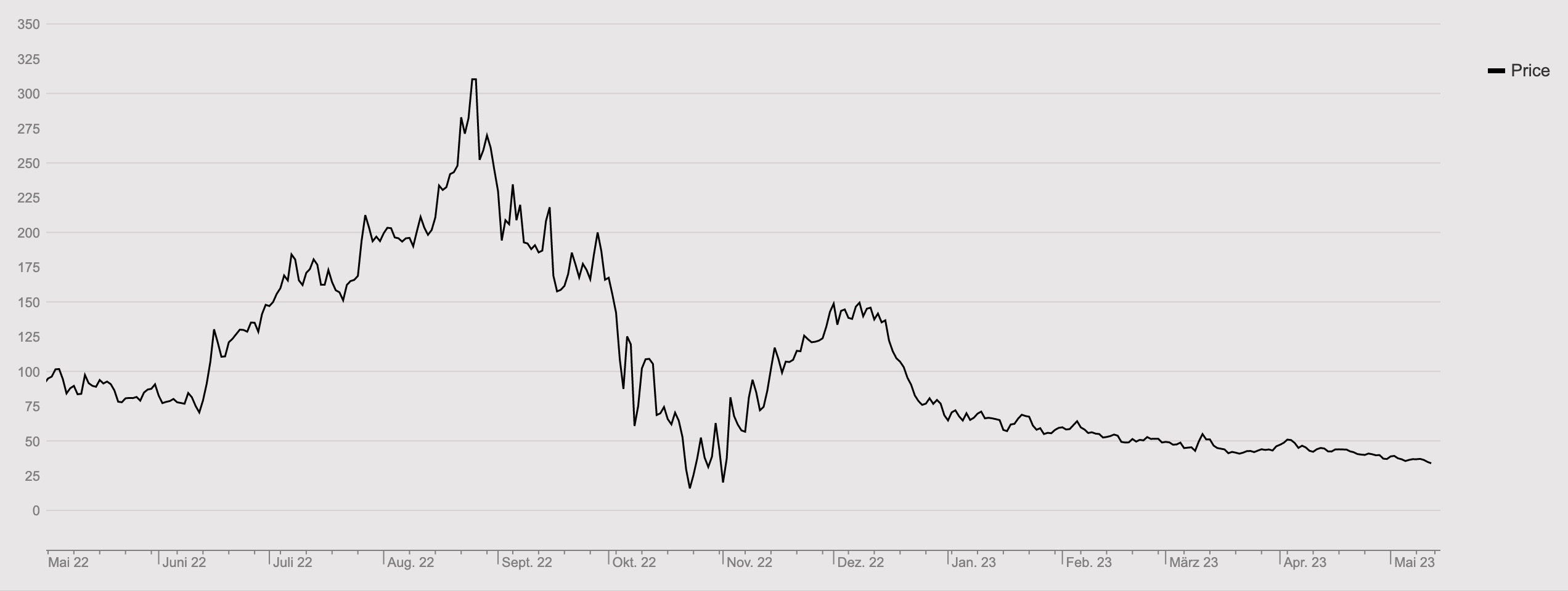 Nach den volatilen Schwankungen im letzten Jahr, die vor allem eine Folge der nicht durchdachten Einkaufspolitik der Bundesnetzagentur waren, hat sich der Gaspreis seit dem Jahreswechsel mit sinkender Tendenz auf einem Niveau eingepegelt, das immer noch mehr als viermal so hoch ist wie vor der beginnenden Gaspreiskrise im Jahre 2021. Die leicht sinkende, wenig volatile Entwicklung des Gaspreises spiegelt sich – wie bereits erklärt – nahezu 1:1 im Strompreis wider. Das Abschalten der letzten AKW konnte also im letzten Monat gar keinen Einfluss auf den Strompreis haben.