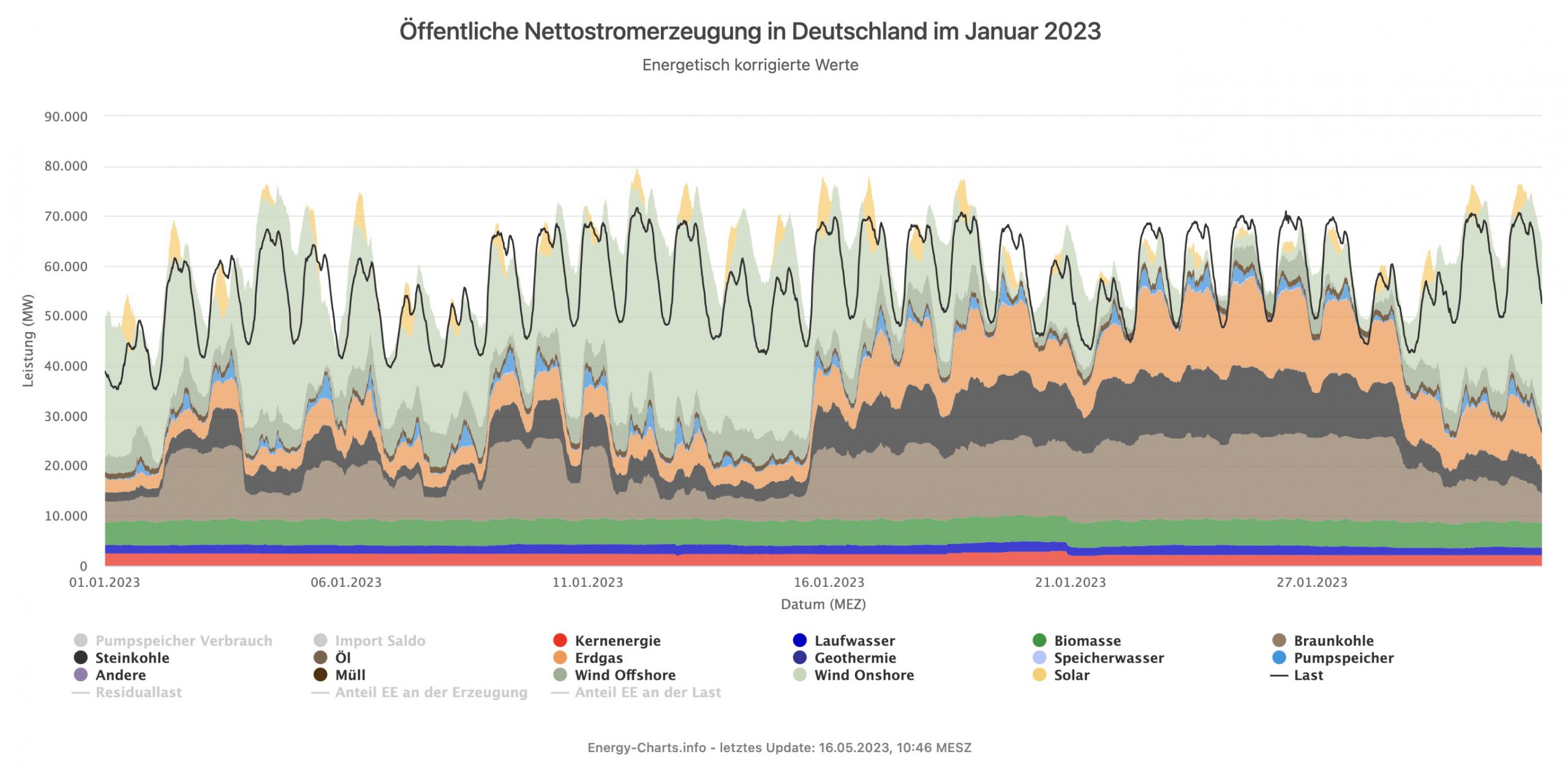 Gefürchtet sind hier vor allem die sogenannten Dunkelflauten, also Zeiträume, in denen die Sonne kaum scheint und der Wind nicht weht. Die letzte Dunkelflaute hatten wir in der zweiten Januarhälfte dieses Jahres. Hier konnten letztlich zugeschaltete Gas- und Steinkohlekraftwerke im Inland das Netz stabilisieren.